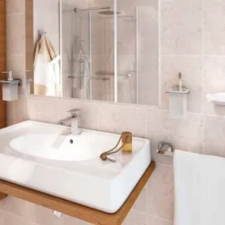 ABACUS Vessini X Series Wetroom Glass Towel Hanging Bar with Glass Shelf – Modern Bathroom Accessory