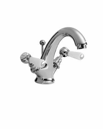 Complete your traditional bathroom, ensuite or cloakroom with this beautiful Basin Mixer from Bayswater. With a curved spout, white detail and a chrome finish, this Bayswater Mono Basin Mixer has the complete traditional look.