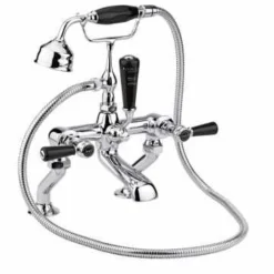 This Bayswater Traditional Bath Shower Mixer is designed to be deck mounted. This Bath Tap has the complete traditional look with its chrome finish, lever handles, hex collar and black detail.