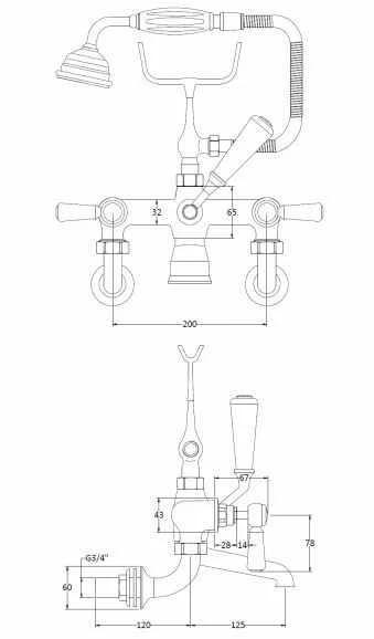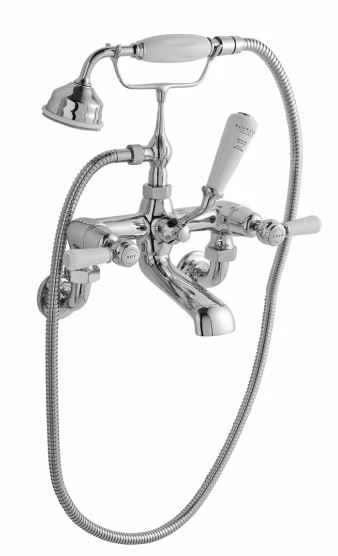 This Bayswater Traditional Bath Shower Mixer is designed to be wall mounted. This Bath Tap has the complete traditional look with its chrome finish, curved edges, hex collar and white detail.