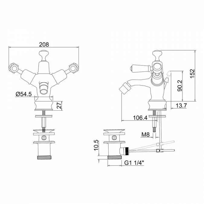 Burlington Kensington Traditional Bidet Mixer Tap with Pop Up Waste KE13