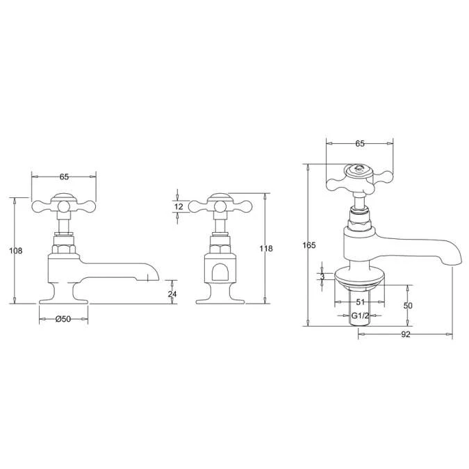 Burlington Stafford Traditional Chrome Basin Pillar Taps STA12