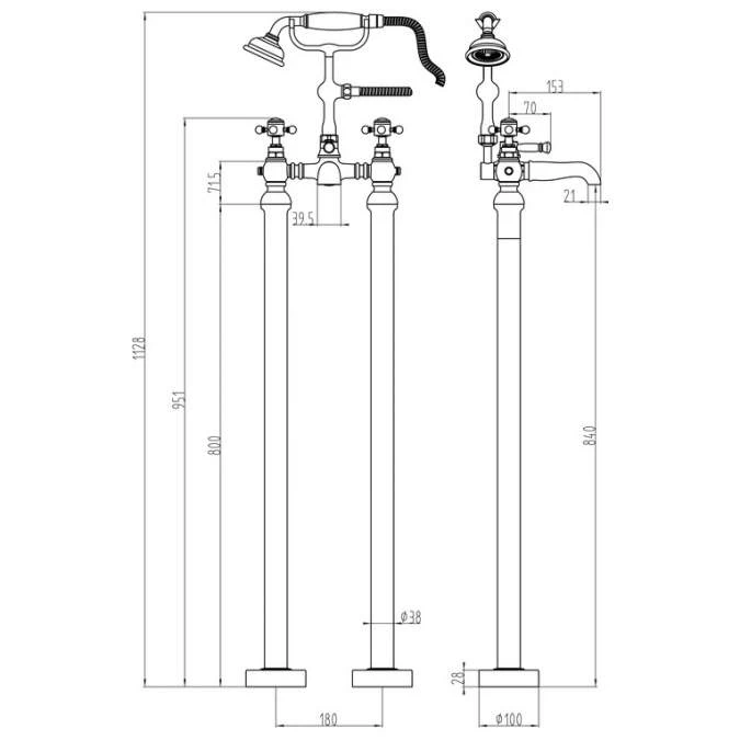 The Elizabeth chrome floor standing bath / shower mixer tap. This product comes with a 3 year guarantee on valves and a 5 year guarantee on the body and finish.