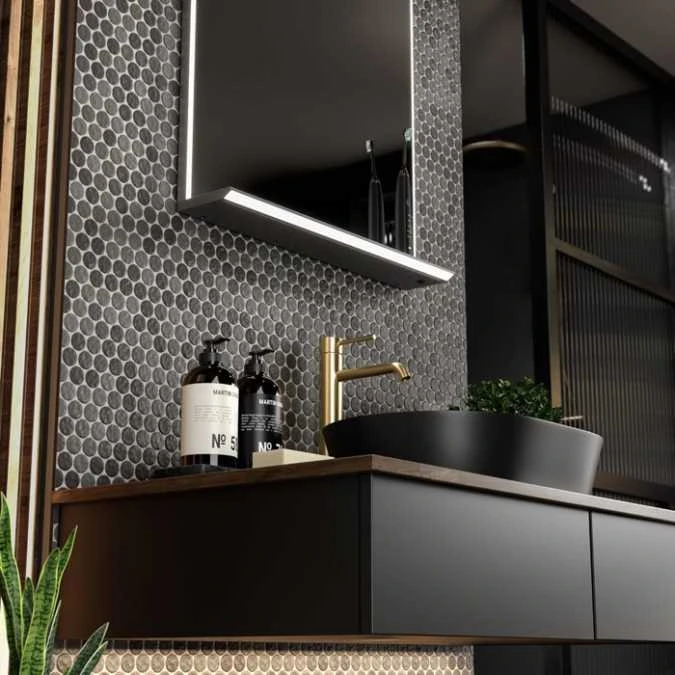 Platform blends the sleek, minimalist charm of an illuminated mirror with all the benefits of storage, thanks to a convenient shelf, which has a beautiful glass surface that reflects the light and provides ample space for all your essentials. As well as featuring a heated pad in the mirror surface to reduce condensation, Platform also includes a wireless phone charger that is concealed in the glass shelf and a toothbrush charger, maximising practicality.