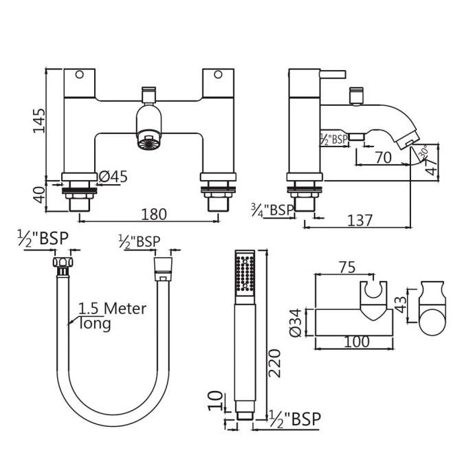 Florentine Chrome Bath Shower Mixer Specifications: