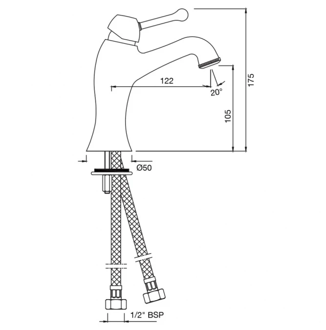 Queens Gold Dust Basin Mixer Specifications: