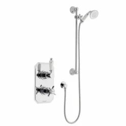 The Klassique Thermostatic Concealed Showers traditional style will suit most traditional bathrooms with round themes, ie round taps and radiators, with sleek, elegant, round lever handles and a stunning slide rail shower kit.