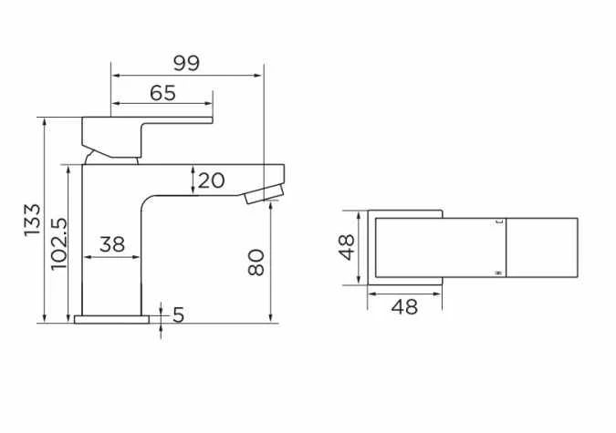 - 99mm Tap Centre to spout