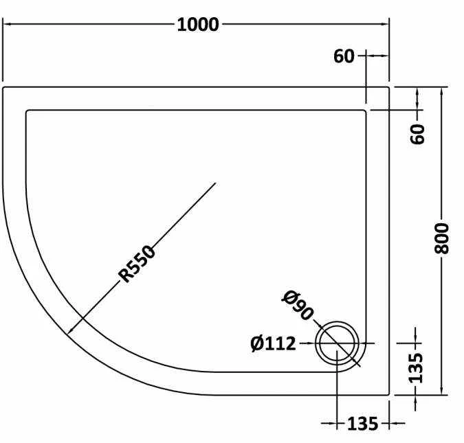 NUIE Slate Grey 1000 x 800 Left-Hand Quadrant 40mm Shower Tray – Inc FREE Chrome Waste