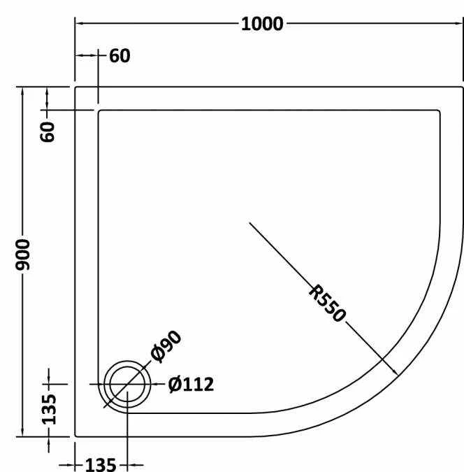 NUIE Slate Grey 1000 x 900 Right-Hand Quadrant 40mm Shower Tray – Inc FREE Chrome Waste