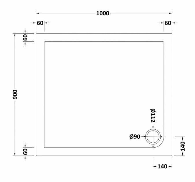NUIE 1000 x 900 Rectangular 40mm Shower Tray – Inc FREE Chrome Waste