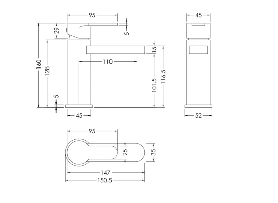 - Dimensions – H160mm W50mm x D152mm