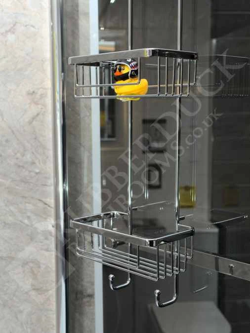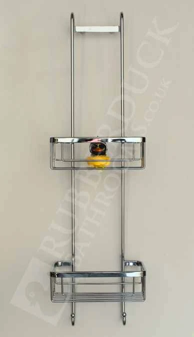 Roman Showers RSB01 double shower hanging baskets with hooks. Keep your shower space and shower tray clutter-free with a Quality Chrome Roman Shower Basket.