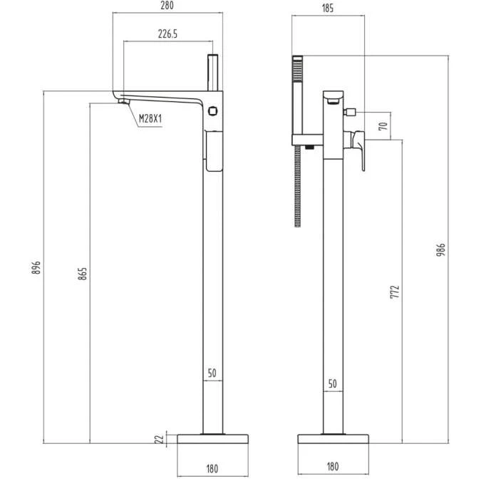 Scudo Muro Black Freestanding Bath Shower Mixer