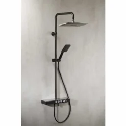 Vema Matt Black Thermostatic Shower Column with Fixed Head & Riser | Modern Rigid Riser Shower Kit