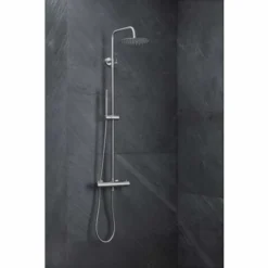 Vema Thermostatic Shower Column with Fixed Head & Riser – Stainless Steel Shower Kit