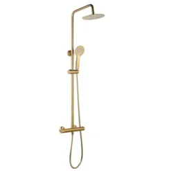 Niagara Equate Round Brushed Brass Thermostatic Dual Head Shower Set – Premium Shower Kit