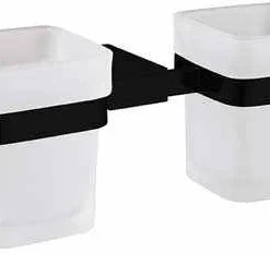 - Upgrade your bathroom with The White Space Double Tumbler and Holder in sleek black. This modern accessory keeps your essentials organized and within reach.