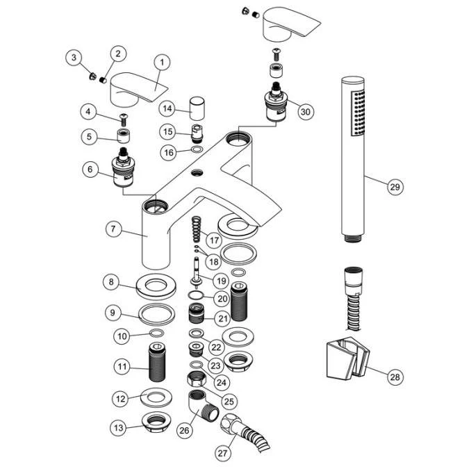 - Operation: single lever cartridge