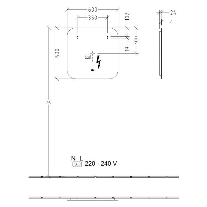 - Featuring a generous 600 x 600mm size, this bathroom mirror is perfect for single or double vanities. The LED lights are energy-efficient and provide bright, even lighting for shaving, makeup application, or grooming.