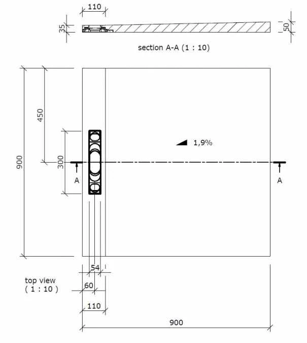 This wedi Shower Base has a 300mm Drainage Channel. Choose between a Standard Waste Cover, Deluxe Waste Cover or Tileable Waste cover from the drop-down section above (click on the option to show an image of each waste cover).
