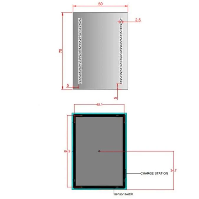 - Sensor on/off switch located at the bottom of mirror