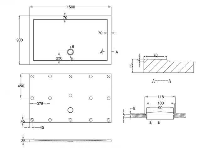 Zamori Rectangular Shower Tray 1500 x 900mm With Central Waste
